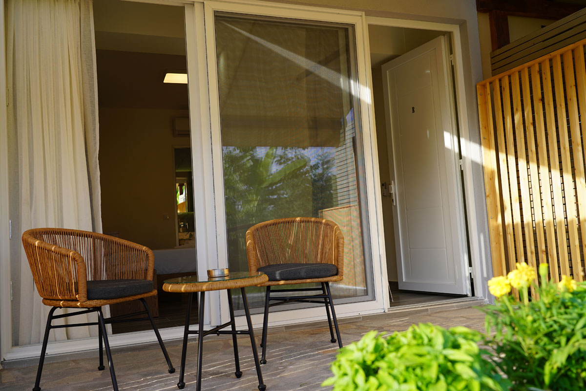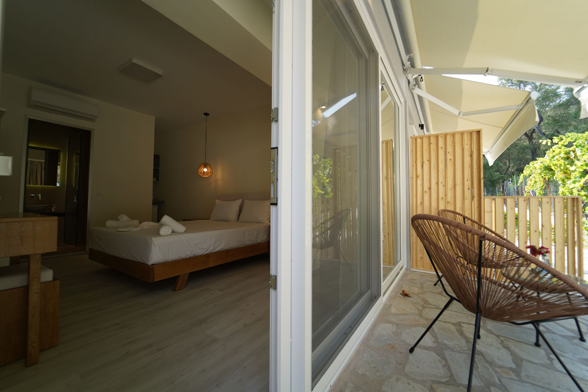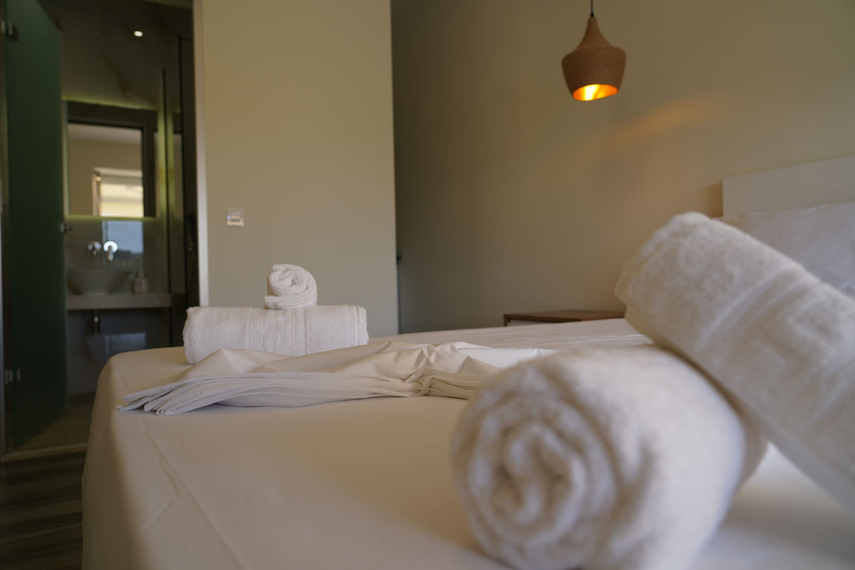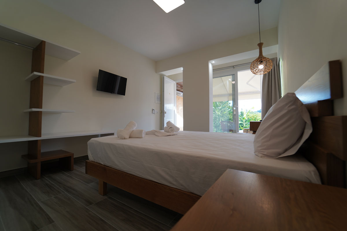 Τα Casa Αrkoudas είναι ευρύχωρα διαμπερή δωμάτια 2 κλινών, χτισμένα μόλις το 2021, με ανεξάρτητα μπαλκόνια που βλέπουν προς τον κήπο του συγκροτήματος.